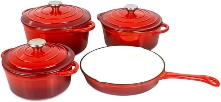 7 Piece Cast Iron Dutch Oven Cookware Pot & Stout Pan Set Red