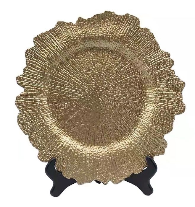 25 Piece Gold UnderPlates, 38cm Reef Plastic Chargers for Dinner Plate
