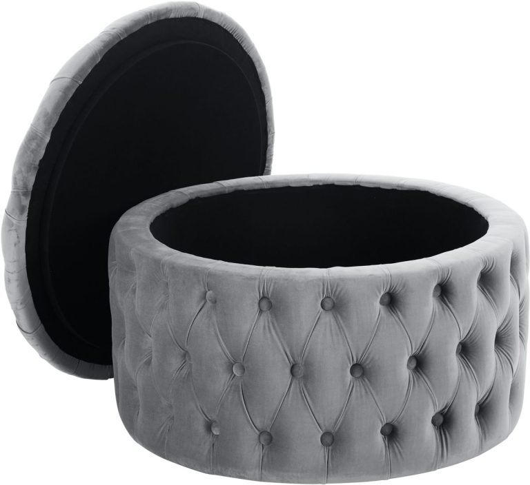 Liane Round Deep Button Ottoman w/ Storage Box – Grey – 80 cm