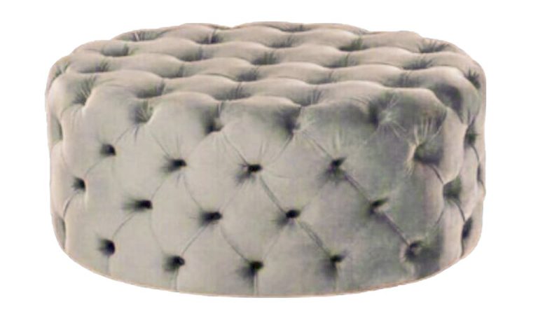 Paris Grey Leather Round Non-Storage Ottoman – 35 cm