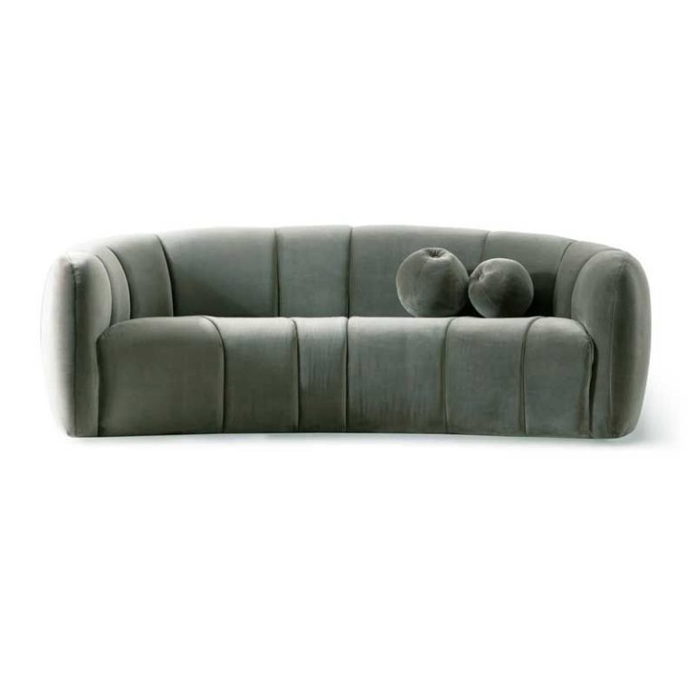 Rose Channel Tufted Curved 3 Seater Couch Sofa – Grey