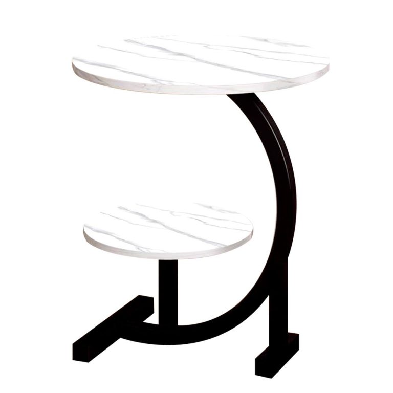 Round Side Table Double Layer Small Coffee Table – black+white