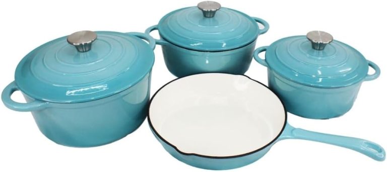 Sandha 7 Piece Authentic Cast Iron Dutch Oven Cookware Pot Set – Sky Blue