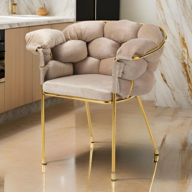 Metal Dining Chair (Set of 1, Finish Colour – beige and gold)