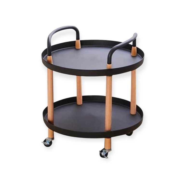 Movable Round Coffee Table 2 Tier Storage Trolley Side Table Trolley – Black