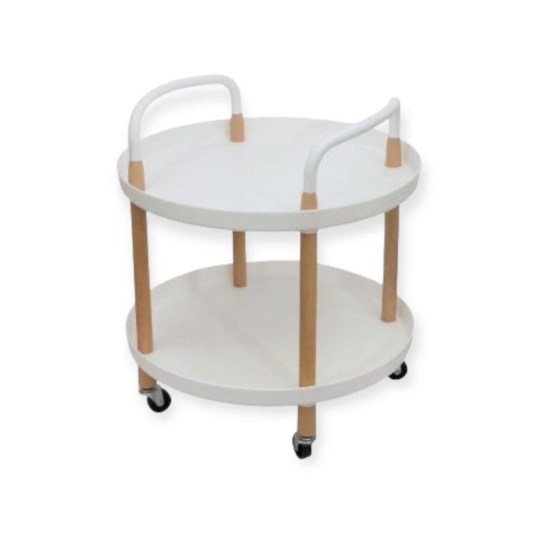 Movable Round Coffee Table 2 Tier Storage Trolley Side Table Trolley – White
