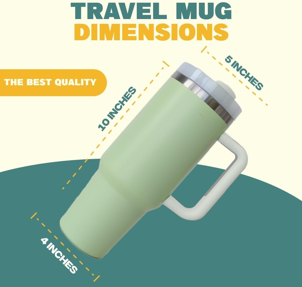 Keep Hot or Cold:This 40 oz. Tumbler with Handle,features double wall vacuum insulation technology,Keeps beverages hot or cold for hours.Whether you’re at the office, on the road, or on a camping trip, and traveling,this durable tumbler is designed to keep your coffee hot Drinks or your water ice-cold all day long.