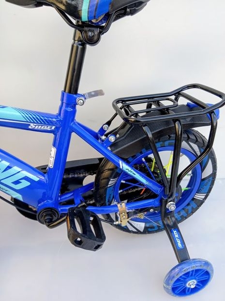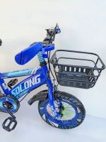 1 x Blue and Black bicycle for kids with training wheels and mud flaps basket, and carrier