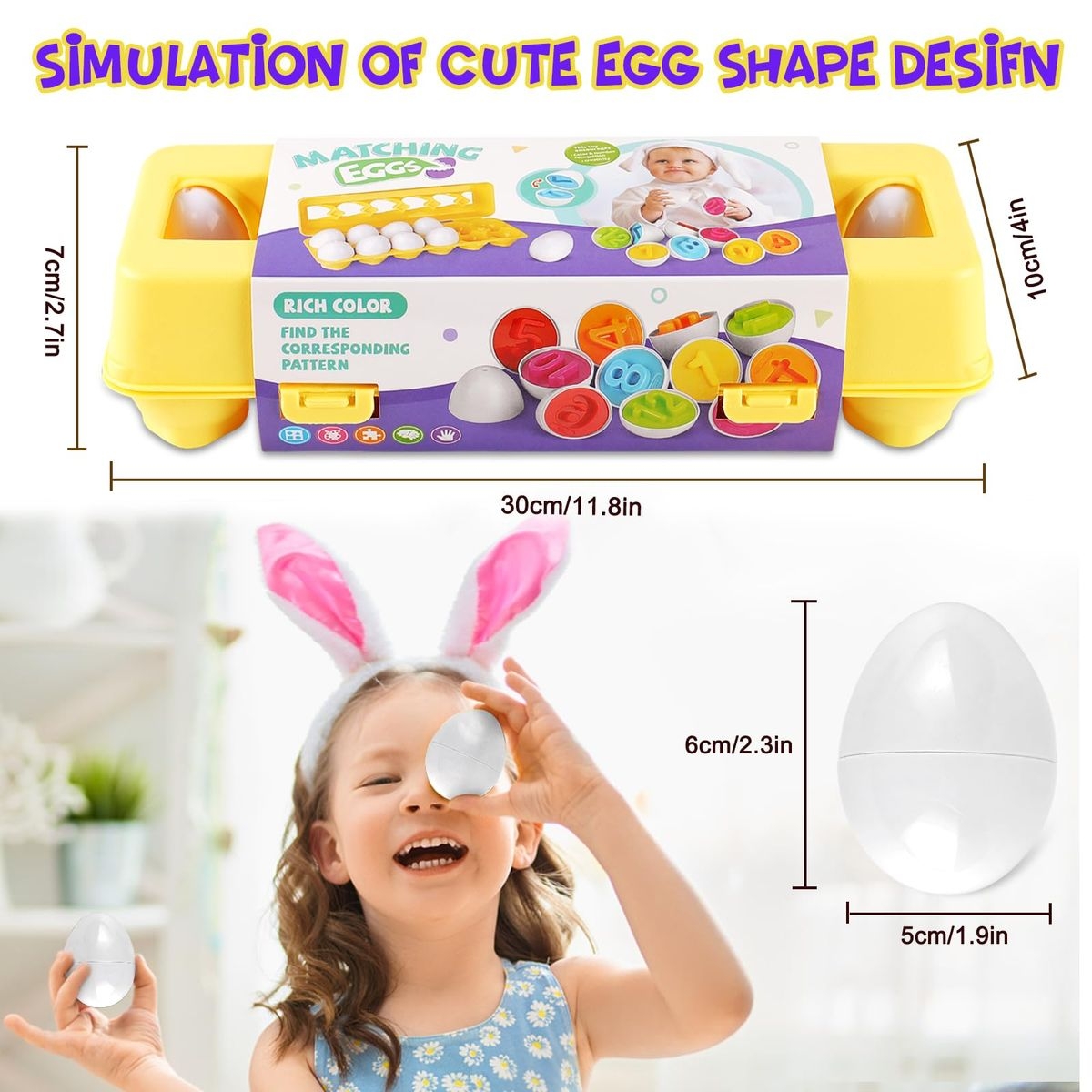 – Early Learning Development: Each plastic egg contains a different color and shape can build early shape and color recognition skills for develop hand-eye coordination and intellectual development, fine motor skills with kids to build close interaction and communication.
