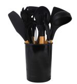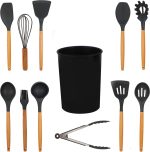 12 Pcs Kitchen Silicone Cooking Utensils Set – Non-Stick Wooden Spatula Set – 230 C Heat Resistant – Non-Scratch Kitchen Gadgets – Silicone Utensils for Cooking