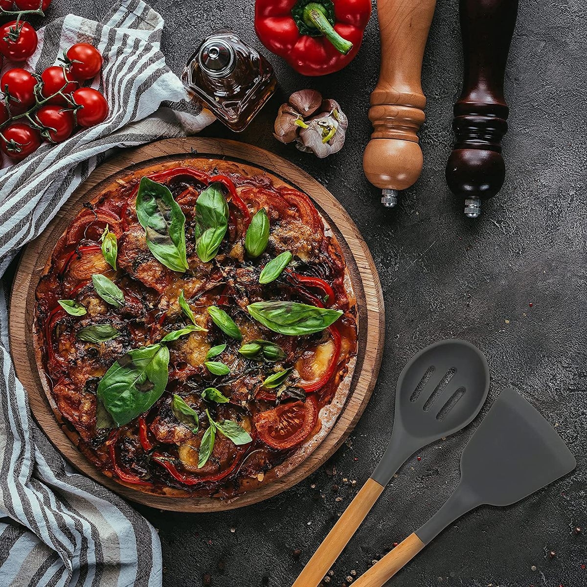 12 Pieces Non-Stick Silicon & Wooden Handle Kitchen Utensil Set – Grey