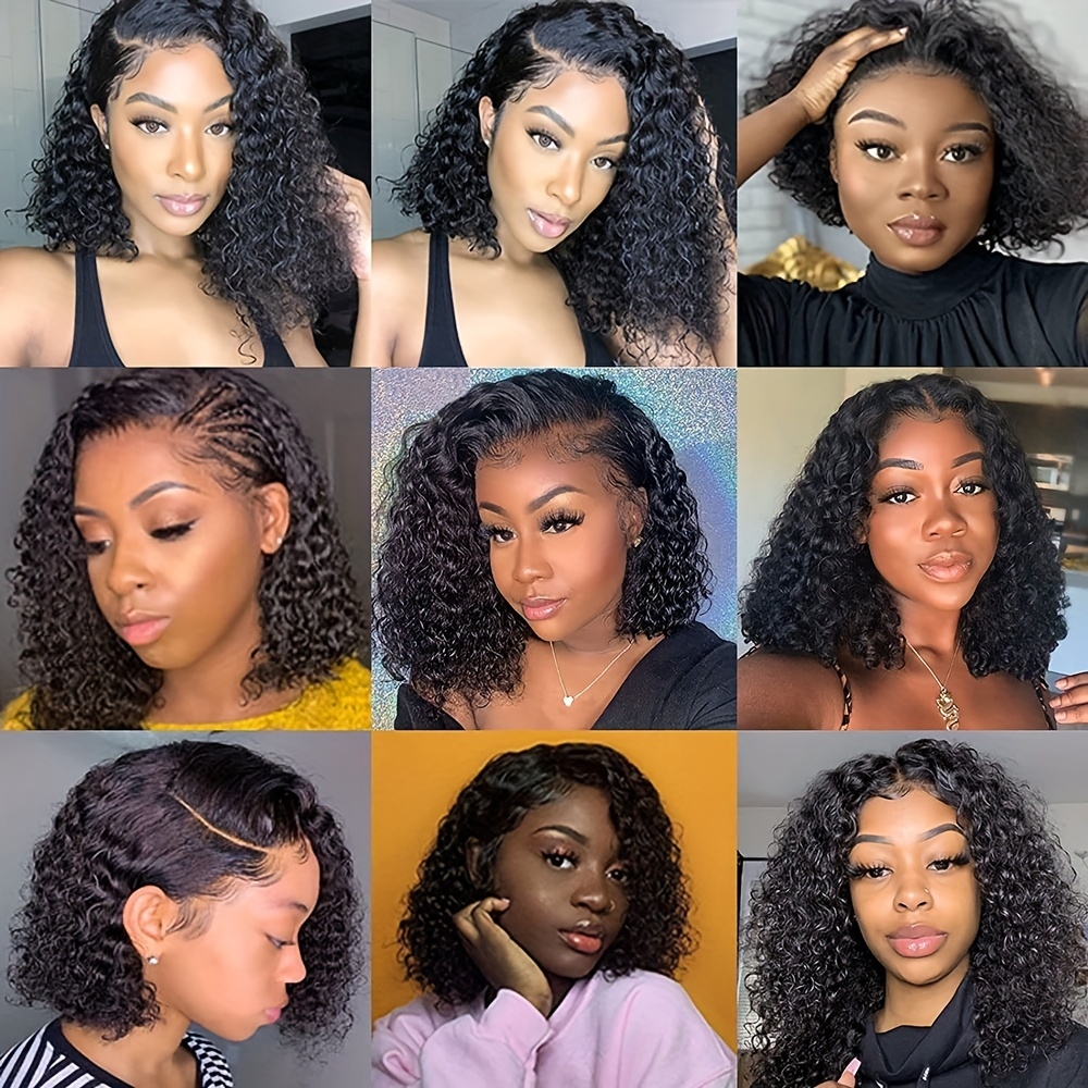 3 reviews for 150% Density 13×4 Lace Front Human Hair Wig Short Curly Bob Lace Front Human Hair Wigs PrePluck With Baby Hair Water Wave Frontal Wigs For Women Deep Wave Lace Wigs
