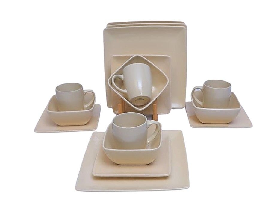 16-Piece Ceramic Porcelain Square Dinnerware Set With Dinner Plate,Dessert Plate,Bowl,240ml Mug Set Dinnerware Dish