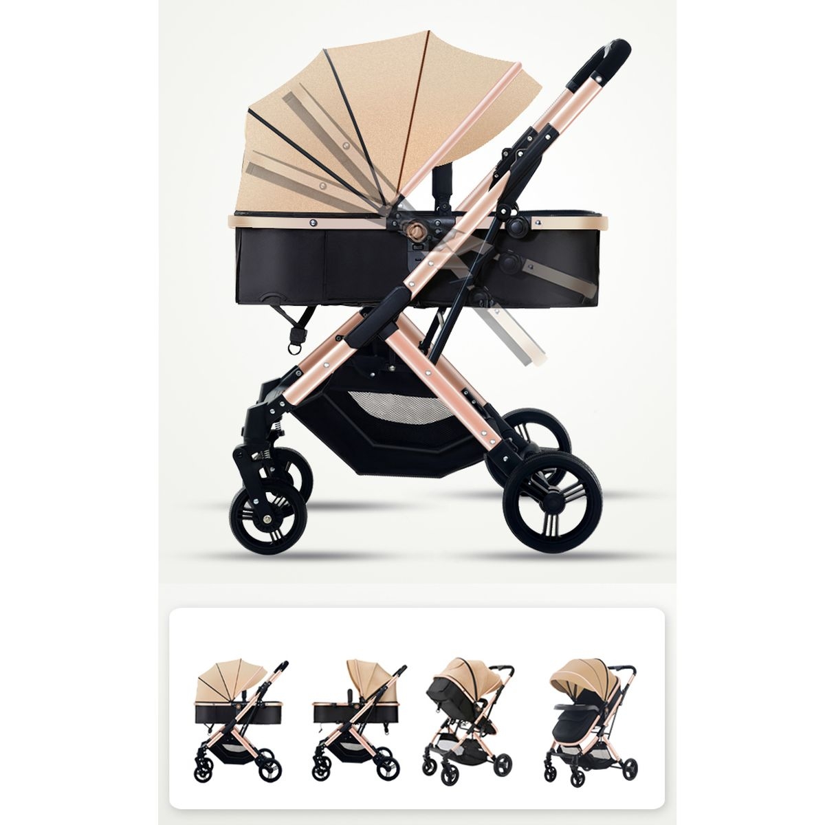 I returned the stroller because the frame was peach instead of gold or rose gold as it looks on the picture. The stroller is great though, good quality material and big. If I wanted a peach frame I would have kept it but that’s not what I was going for.