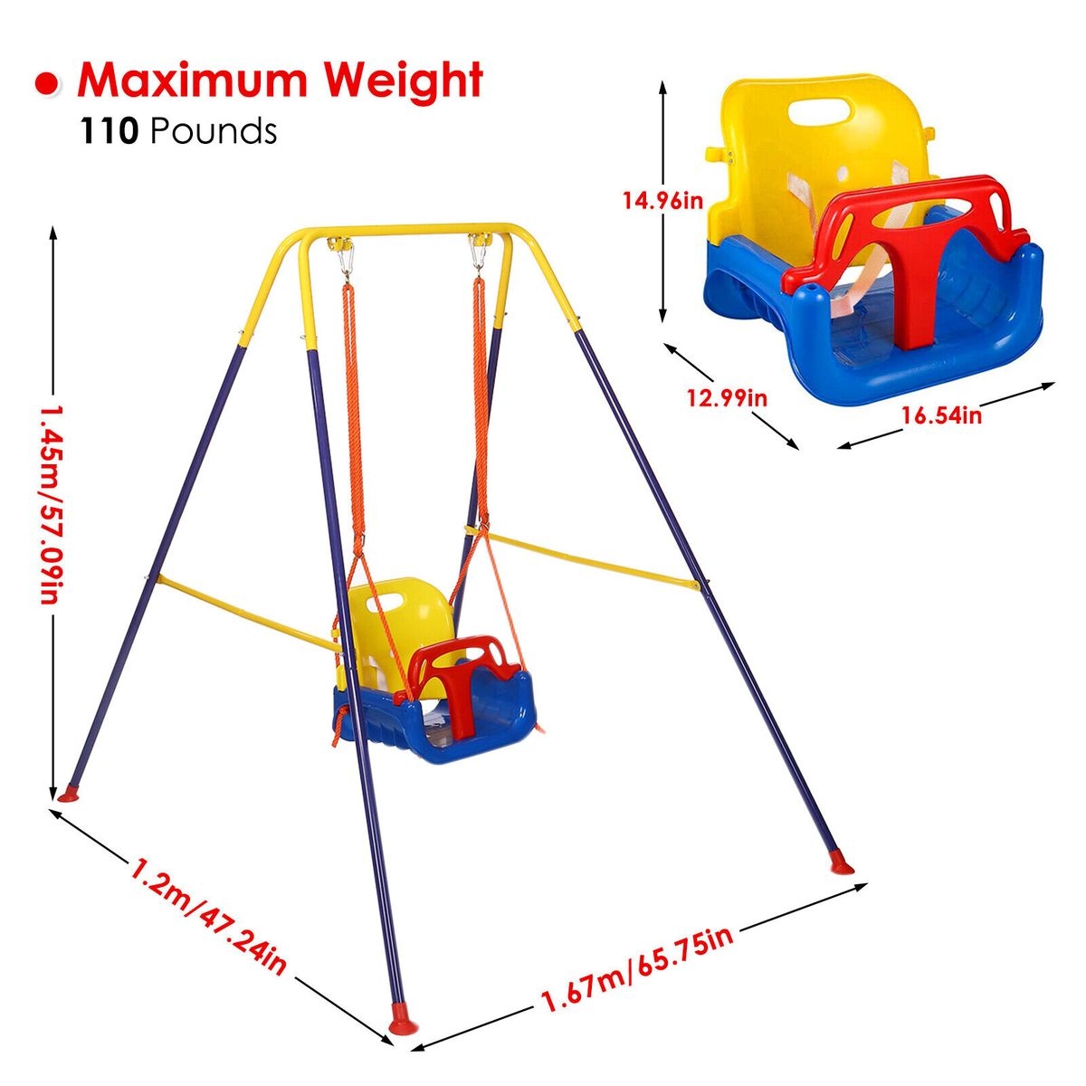 Get ready for endless hours of fun! swing set comes with a removable seat, suitable for toddlers aged 6-36 months, kids aged 3-6 years, and teens aged 6-10 years. The length of the rope is adjustable to 49in, and your baby can play indoors or outdoors. This set will attract and encourage kids to spend more hours outside and enjoy a happy childhood.