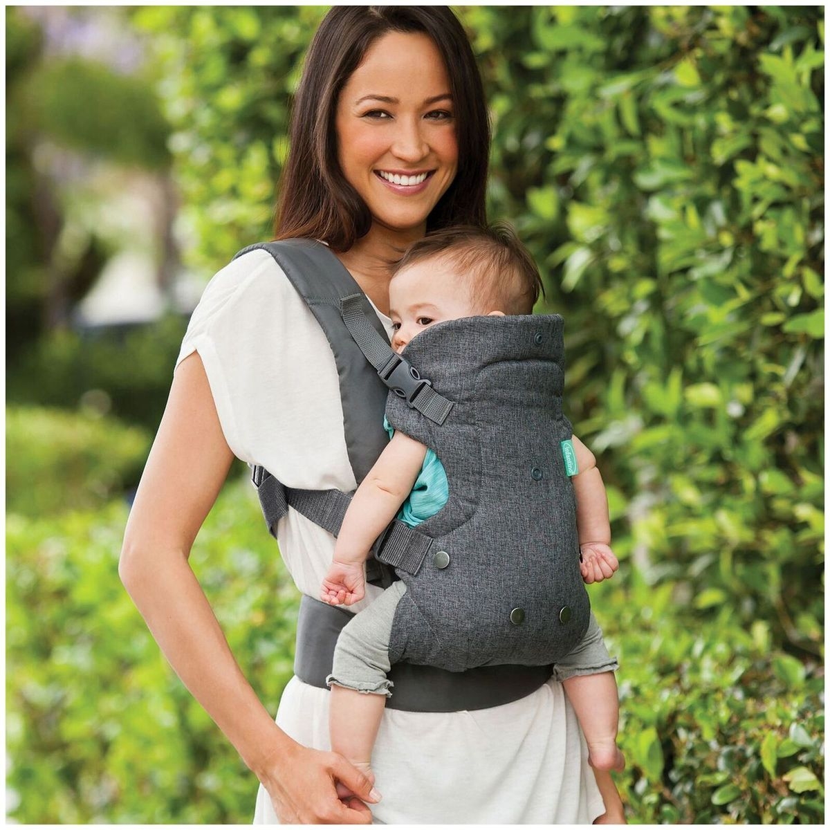 4 ways to carry: facing-in (narrow seat), facing-in (wide seat), facing-out and backpack