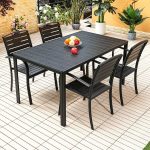 - a perfect blend of style, durability, and comfort, ideal for enhancing your outdoor dining experience. This elegant 5-piece set includes 1 sturdy table and 4 ergonomically designed chairs, providing the perfect solution for your outdoor gatherings, whether for casual family meals or stylish entertaining.
