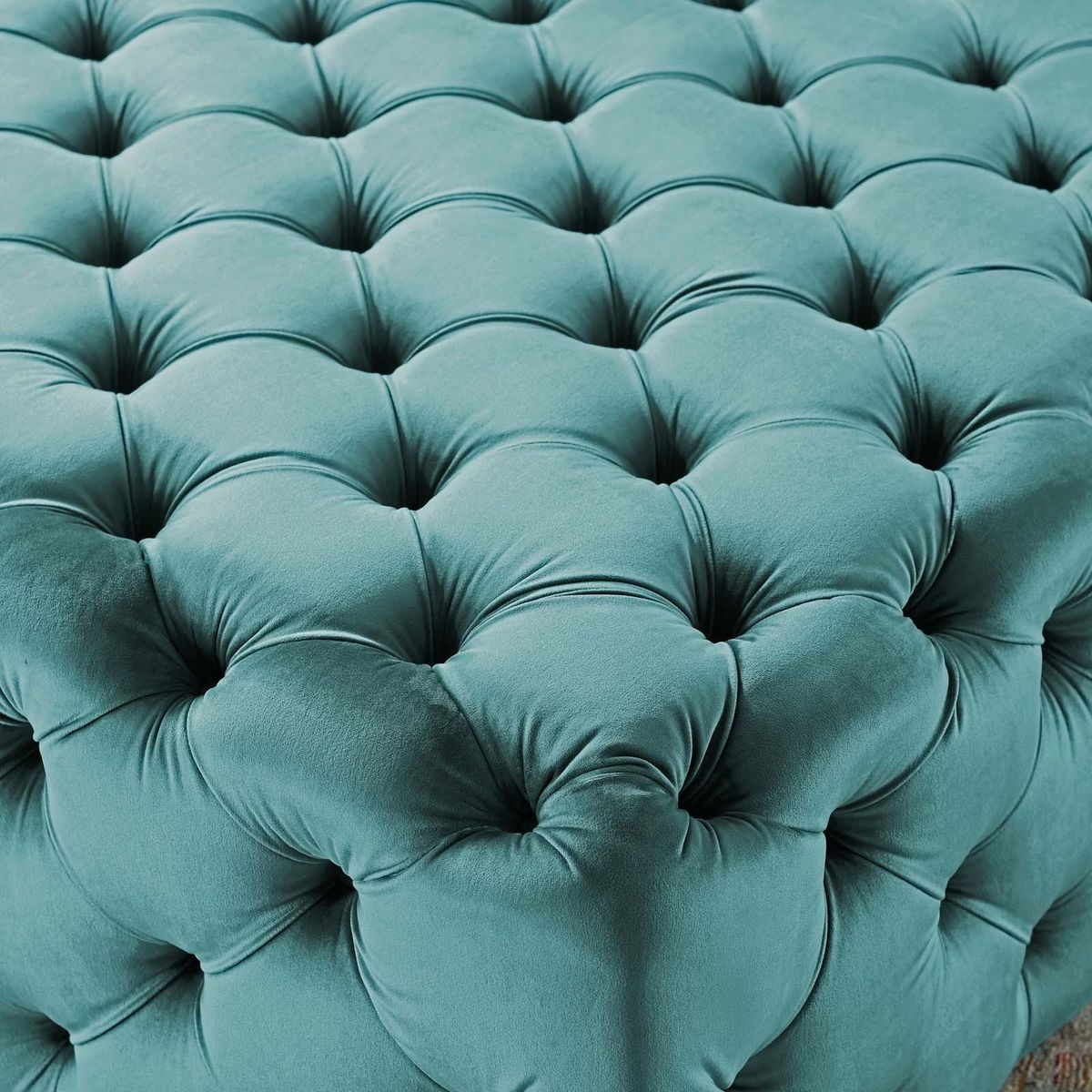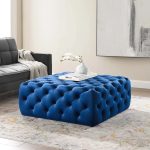 This tufted button large square ottoman comes upholstered in soft and durable stain-resistant performance velvet fabric with dense foam padding for a luxurious seating experience