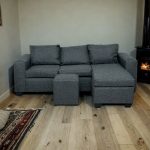 As for the couch itself, it looks lovely in our apartment, super comfortable.. easy to fall asleep on. Color is great, a bit lighter than it is in the pictures, which worked out great for us. Quite a decent size, definitely perfect for 1-2 bedroom apartments if you don’t have much space in the living room. Easy to move around the L shape part.