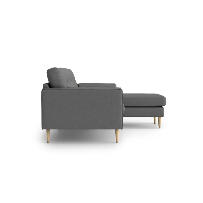 The Avril Velvet Corner Couch Sofa is a stylish centerpiece for any home that is as comfortable as it is elegant. The corner sofa features button-back detailing, included cylindrical toss pillows and solid wood legs. It can be right or left-hand facing, and it is available in a range of colors to suit your existing décor.