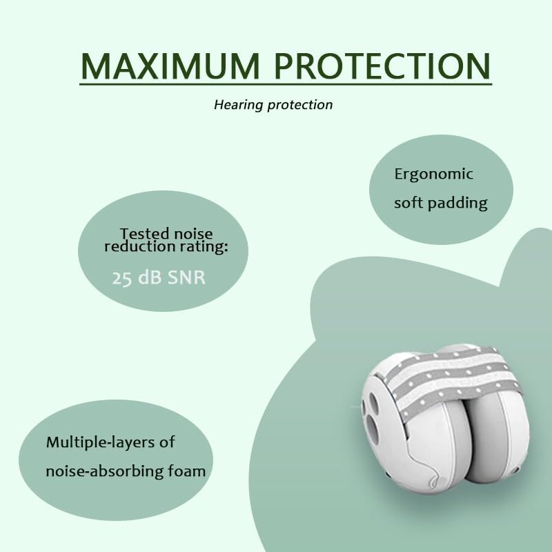 Our baby earmuffs are tested and certified to provide a noise reduction rating of 25 dB SNR, ensuring your little one enjoys a peaceful environment and is shielded from harmful noise levels.