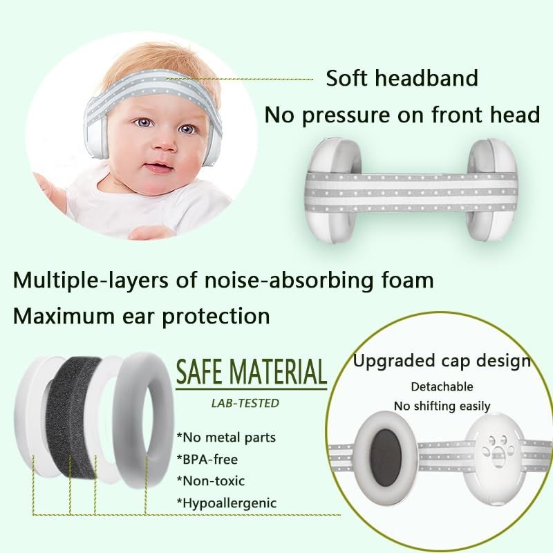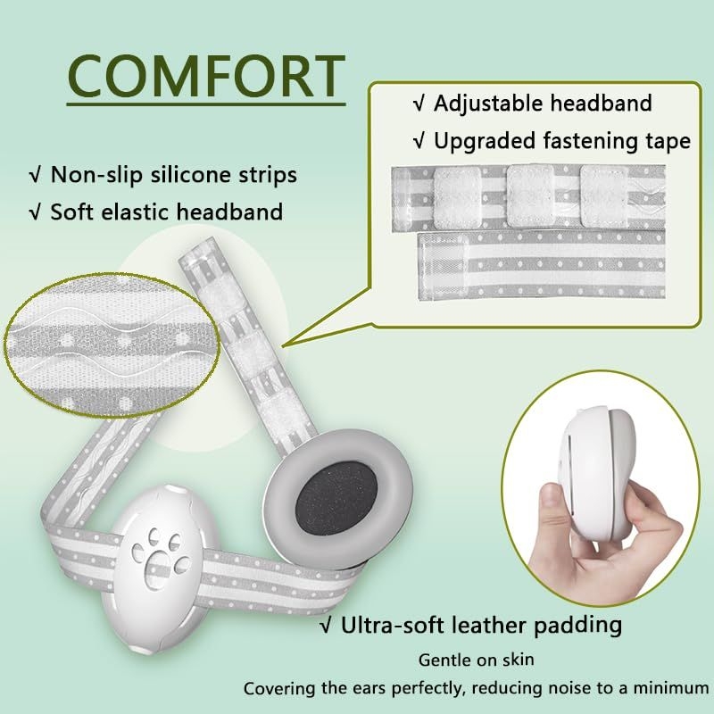 Made with soft PU material and featuring an anti-slip silicone headband, these earmuffs are gentle on your baby’s skin and provide a secure, comfortable fit without causing any pressure on the forehead.
