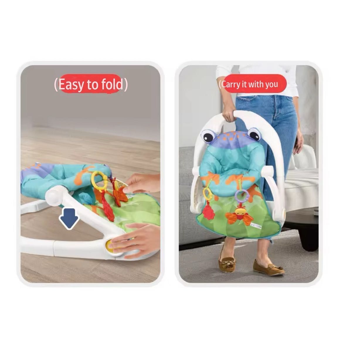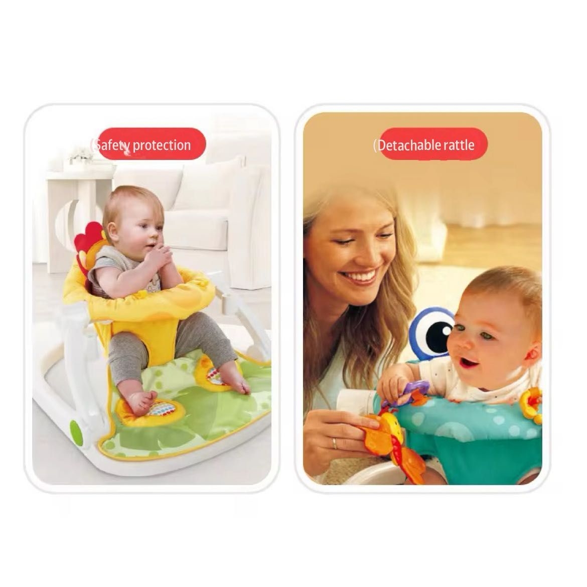 The Baby Floor Seat Activity Center is a versatile and innovative infant chair designed to provide a safe and engaging space for your little one to sit up, play, feed, and explore. This thoughtfully designed baby seat offers a comfortable and secure environment for babies to develop their motor skills and engage with their surroundings. Key features and description: Ergonomic Design: The seat is ergonomically shaped to provide optimal support for your baby’s back and posture as they learn to sit up on their own. It encourages proper spine alignment and helps with muscle development. Safety and Stability: The floor seat is equipped with a wide and sturdy base that ensures stability and minimizes the risk of tipping over. It also includes safety straps to secure your baby in place. Interactive Activity Center: The seat comes with an engaging activity center that is designed to stimulate your baby’s senses and curiosity. It may include detachable toys, mirrors, rattles, and other sensory elements to keep your baby entertained and promote cognitive development. Multi-Functional: This baby floor seat can be used for various purposes. It’s ideal for feeding your baby in a more upright position, making mealtime more comfortable for both baby and parent. It can also serve as a playtime spot where your baby can explore toys and interact with the world around them. Easy to Clean: The seat is made from easy-to-clean materials, ensuring that any spills or messes can be wiped away quickly, keeping it hygienic for your little one. Portable and Lightweight: The seat is lightweight and easy to transport, making it a great option for use at home, when visiting friends and family, or even for outdoor activities. Adjustable: Some models may have adjustable features to accommodate your baby’s growth. You can adapt the seat to suit your child’s changing needs. Stylish and Colorful Designs: Many baby floor seats come in a variety of colors and designs, allowing you to choose one that matches your aesthetic preferences. Overall, the Baby Floor Seat Activity Center provides a secure and entertaining environment for your infant, helping them develop important physical and cognitive skills while making daily routines such as feeding more convenient and enjoyable for both parent and child. Always ensure that you closely supervise your baby when they are in the seat to ensure their safety and well-being.