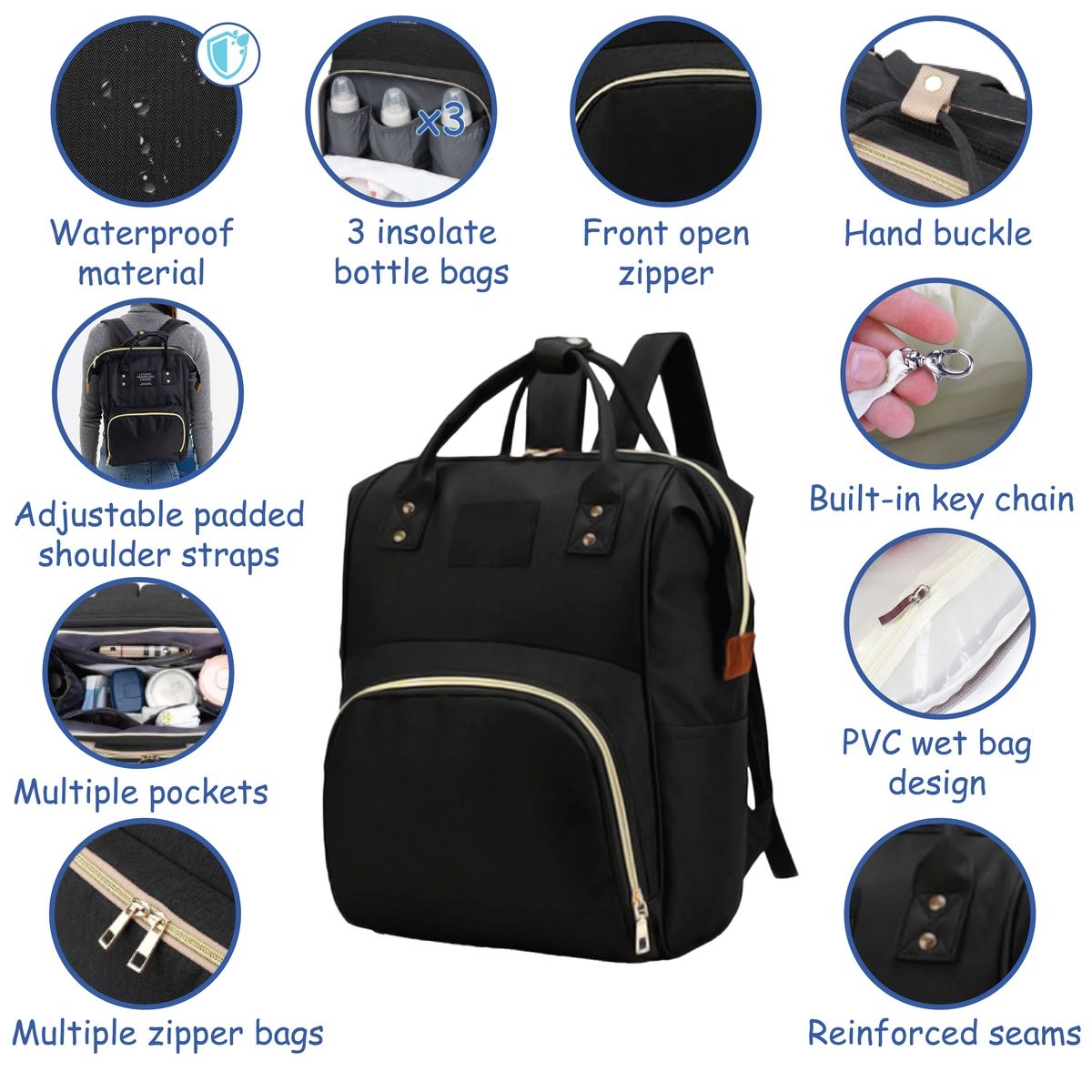 This Ultra-Durable Backpack Bag is made from a high-quality polyester m lange material. Designed with busy parents in mind, this bag is extremely versatile. It boasts one large compartment, five internal pockets for smaller items, and even an external waterproof pocket for electronics. So, on your next outing with your kids, you`ll be able to fit all your essentials in one bag.