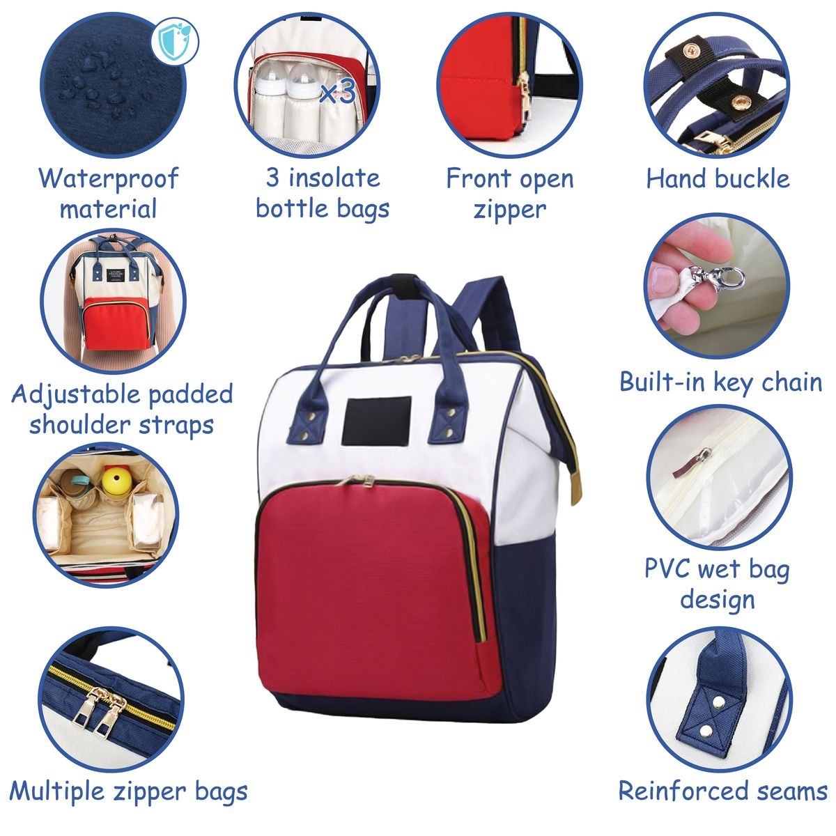 This Ultra-Durable Backpack Bag is made from a high-quality polyester m lange material. Designed with busy parents in mind, this bag is extremely versatile. It boasts one large compartment, five internal pockets for smaller items, and even an external waterproof pocket for electronics. So, on your next outing with your kids, you`ll be able to fit all your essentials in one bag.