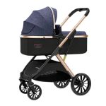 Baby Links Luxurious 2 in 1 baby Stroller – Navy Blue and Gold