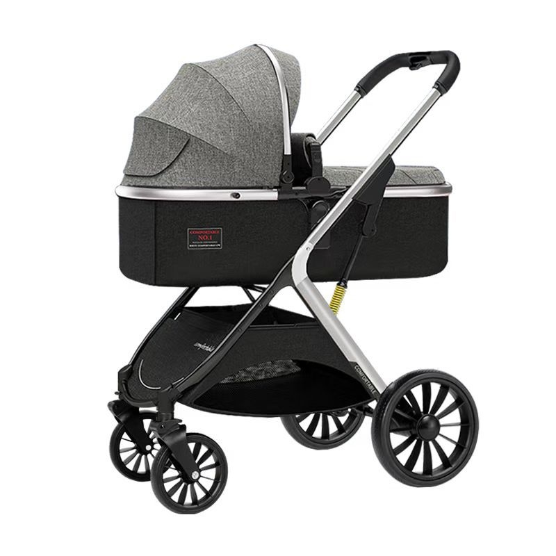 The 2-in-1 Luxury 4 Wheel Baby Stroller, Jogger Pram and Bassinet. Your baby can face you or enjoy the outside scenery and also be free from automobile exhaust pollution. As a bassinet pram, a baby can immediately have a comfortable sleeping space. Our stroller is also reversible in both directions to meet your different needs. Detach the basket and fold the frame away in 2 easy steps. Convenient to take your baby on any occasion to give your baby a comfortable journey!