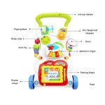 The Sit-to-Stand Learning Walker helps your baby develop from a crawler to a walker through adaptive technology. With a barnyard of playful friends to cheer them on, your little one will have endless fun as they learn to walk. Start out with the easy-to-remove activity panel for floor play or on-the-run fun, then step it up with the fun-to-manoeuvre walker. A drawing board, an electronic organ, a small book, a telephone handset offers endless fun that will stimulate your baby’s learning and develop their motor skills. This walker is able to exercise your baby’s hearing, sense of touch, child’s cognition of different shapes, and learn to walk scientifically. The walker offers two ways to play: push it along the floor + sit and play. Adjustable screw enables you to adjust its speed in accordance with the pace of the baby learning to walk, so the baby can learn to walk in a more safe and scientific way. Triangle solid structure, the walker can assist the baby to maintain the balance of the body so as to form the correct walking posture. Special made rubber rear-wheel, the friction is greatly increased, non-slip. There are non slip textures on the arm, your baby won’t fall down when grasping it. The Musical Walker uses imported ABS material, non-toxic and eco-friendly.