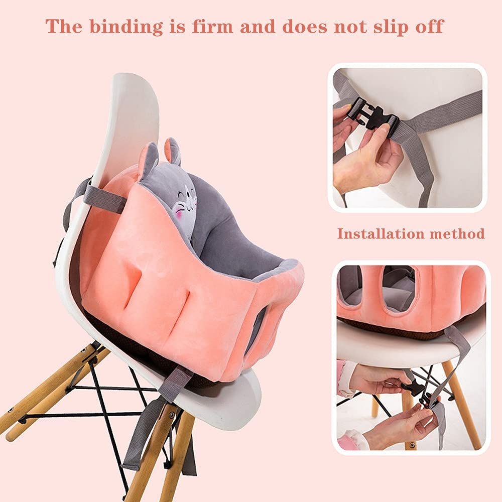 Details Design: (1) Upright seating position- helps stabilize your children’s back, while they learn to sit up. (2) Leniency backrest- baby happy play. (3) The filling is full- so that the babys sitscomfortably. (4) Provides 360 degrees for your baby protection design, the child’s body is well supported and wrapped. (5) Non-slip bottom- Provides frictional effect, rope design fix the chair to make the product play a good anti-skid effect, It is more secure to use