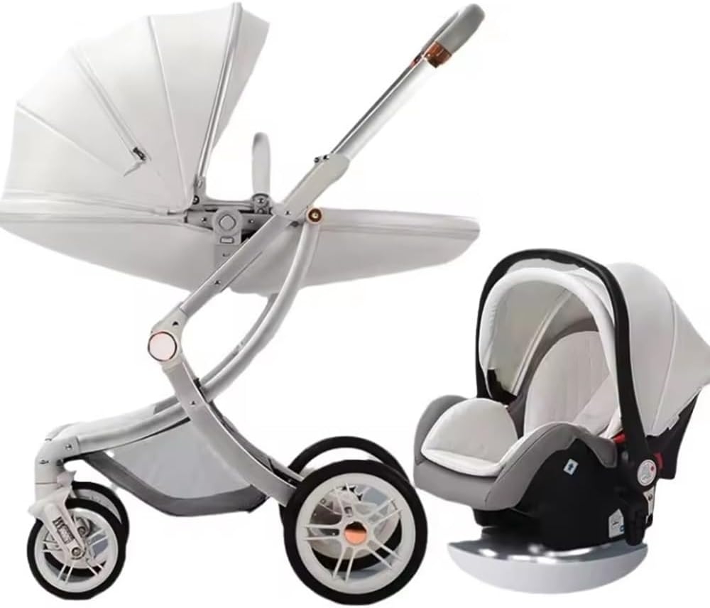 - Baby Stroller 360 Degree 3-1 Baby Pram PU Leather-White