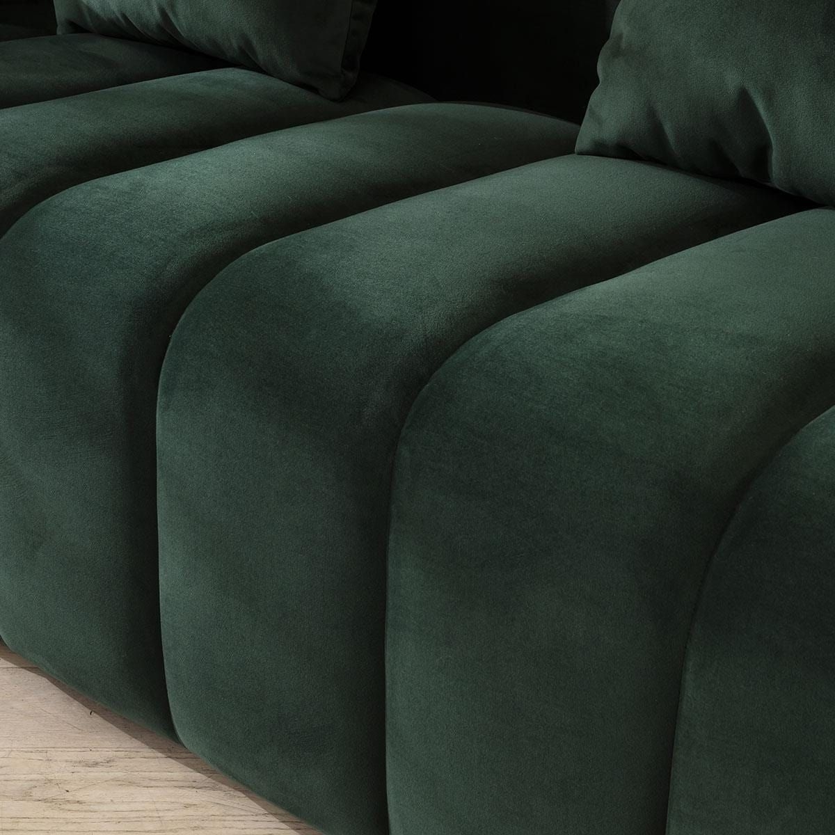 The upholstery is a tactile delight, with a soft-touch velvet fabric in a luxurious dark green, elevating the overall appeal of this sofa. Its high arms not only enhance the stylish appearance but also provide additional support and cosiness, making it an inviting spot to unwind after a long day. Whether you’re entertaining guests or simply enjoying a quiet evening, this 3-seater sofa promises a harmonious blend of style and comfort.
