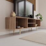 This TV stand is designed to accommodate your entertainment needs with a spacious top surface, suitable for holding your television, gaming consoles, or decor items. The lower shelves and cabinets offer ample storage space for your media equipment, DVDs, or even your favourite board games.