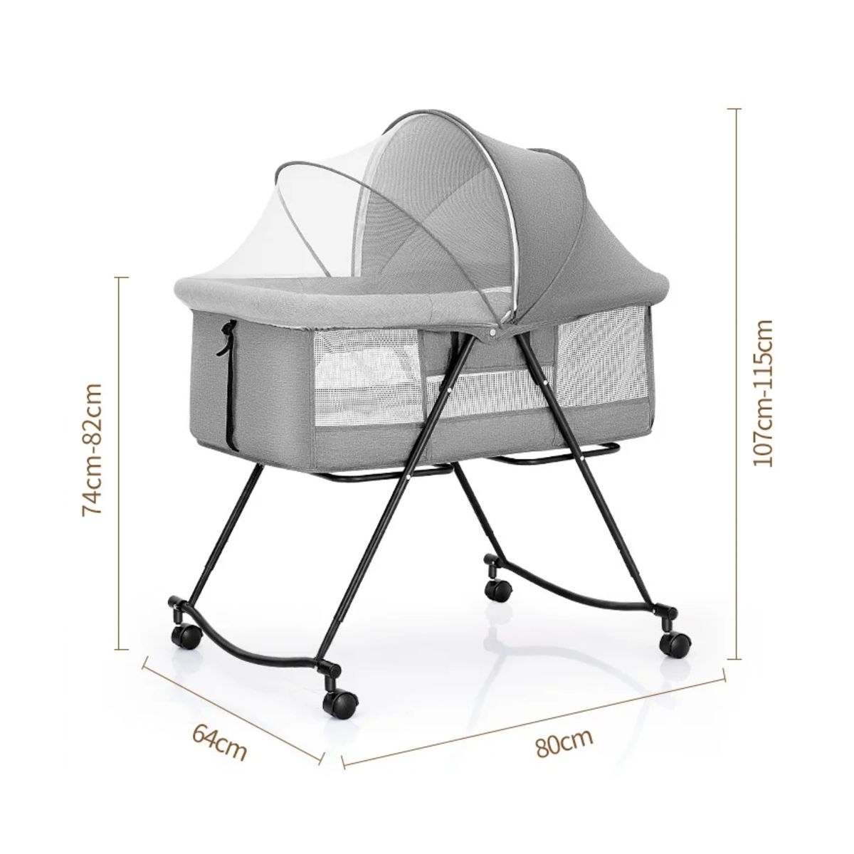 [Cradle for baby Information] Material: Stainless steel, Color: Grey, Size: 91 x 66 x 115cm(LxWxH). Our baby bedside sleeper is made of comfortable and durable materials with mosquito net. It can improve your sleep, and convenient for you to take care of your baby at any time