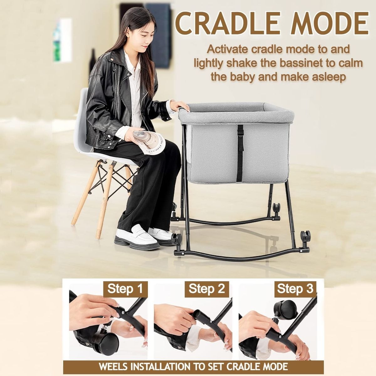 [Removable and washable baby cradles covers] This baby cradles can detach to hand wash or machine wash for long time use. With movable wheels, you can move it room to room, even indoor(living room/bedroom) or outdoor(garden/park).