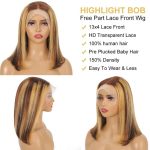 THICK 180% DENSITY BOB WIG – glueless wigs human hair blonde highlights 180 density , glueless highlighted bob wig 180 density , thick soft human hair wig , pre cut highlighter bob wig 13×4 180 dnesity lacefronts on sale human hair