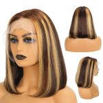 100% HUMAN HAIR WIGS – ombre bob wig human hair 13×4 lace front highlight , highlighted bob wig , ombre bob lace front wigs human hair , glueless wig with elastic band , transparent lace front wigs human hair pre plucked , shoulder bob wig human hair pre plucked