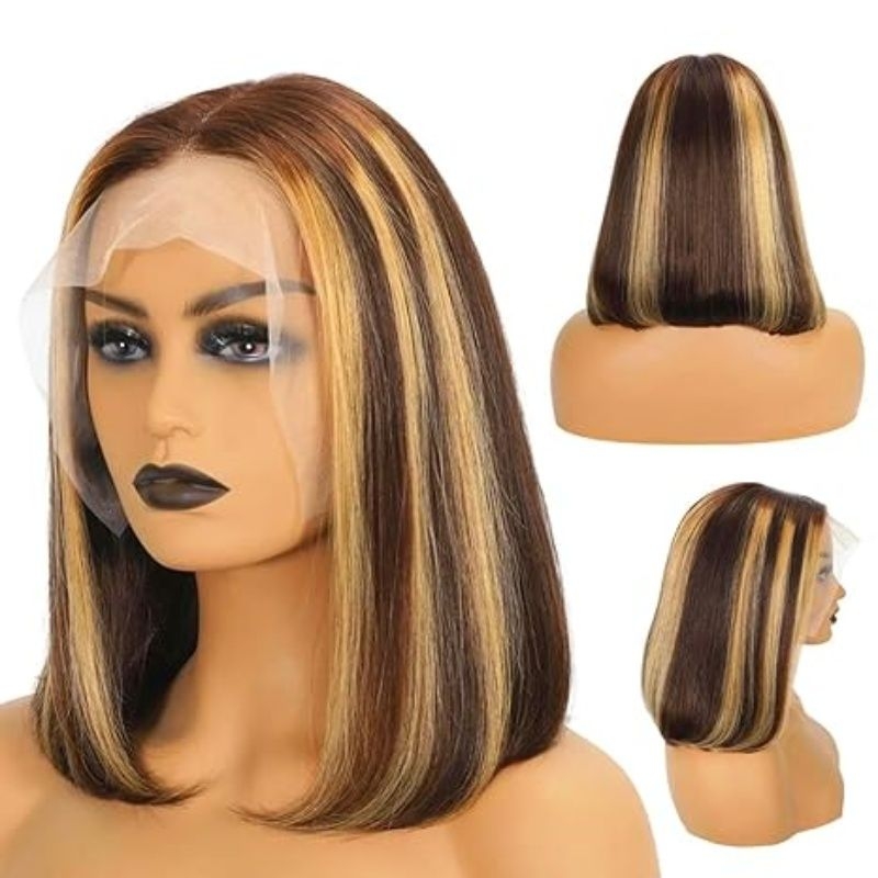 HIGHLIGHT BOB WIG HUMAN HAIR- 100% real human hair wigs , 10A grade virgin human hair , highlight 4/27 bob wig , brown and blonde wig with highlights 4/27 highlight ombre bob wig human hair