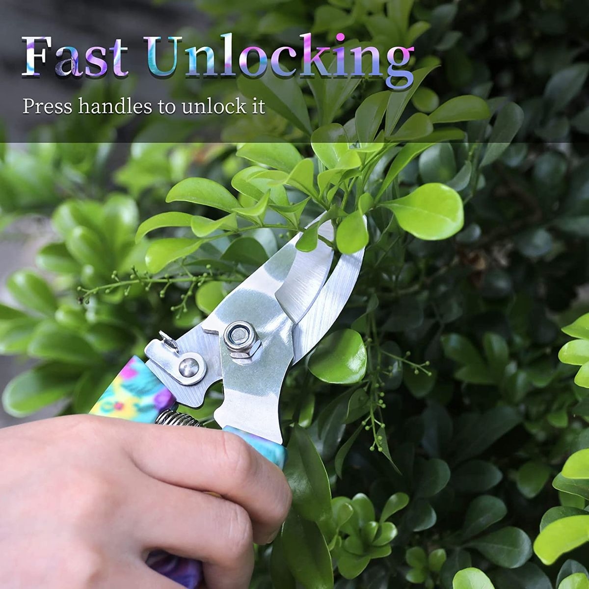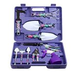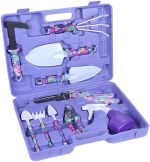 Gardening tool set is made of high quality plastic, heavy duty stainless steel and rust-proof coated iron, rust and corrosion resistant, extremely hard, no need to worry about breakage. Note: Since the tool is very sharp and stay away from the baby