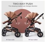 Appearance: Luxury golden frame, brown soft lycra canopy and brown Oxford bassinet bring you a feast of vision. 0-6 months old can sleep in the bassinet, 7-36 months old can sit when you change the bassinet into a seat position.
