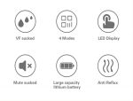 Stimulation mode (5 levels of intensity) Express mode (6 levels of intensity) Two-in-one mode (6 levels of intensity) Dual-frequency mode for correcting inverted nipples (4 levels of intensity)