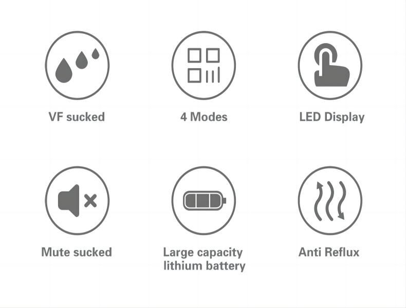 Generous Capacity: With a 150ml capacity, our pump provides ample storage for your expressed milk, ensuring you can keep up with your baby’s needs. Long-lasting Battery: The built-in 1100mAh lithium battery offers extended use, perfect for working mothers or frequent travelers who require a reliable and convenient pumping solution. Powerful Suction: Experience maximum suction strength of 275mmHg, allowing for efficient milk expression and maintaining your milk supply. Anti-Backflow Design: Our pump features an anti-backflow system that prevents milk from flowing back, ensuring hygiene and minimizing contamination risks. Ultra-Silent Operation: Enjoy discreet pumping sessions with our ultra-silent technology, allowing you to express milk without disturbing your baby. Convenient LED Display: The LED display provides clear and intuitive information, allowing you to monitor suction strength and battery life with ease. Easy Assembly and Cleaning: Our pump is designed for hassle-free use. It’s easy to assemble, and all components can be quickly cleaned and disinfected in boiled water or sterilizer, ensuring a hygienic pumping experience. Built-in Memory Function: The pump’s built-in memory function saves your preferred settings, allowing for quick and easy setup for future sessions. Safe and BPA-Free: Crafted from food-grade plastic and silicone, our pump is free from harmful chemicals like BPA, ensuring the safety and well-being of both you and your baby. Protection Rating: Our pump carries an IP40 rating, offering protection against dust and ensuring its longevity and performance.