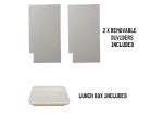 – The Lid contains 3 compartments, for a Lunchbox (one included) and space for pencil bag, juice bottle, or Umbrella/Poncho (Not Included).