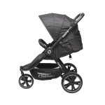 The lightweight pram and easy to manoeuvre, therefore the ideal companion for a shopping tour. Thanks to the lockable and swivelling front wheels, the extra large shopping basket as well as the option to handle the stroller with only one hand. The padded 5-point harness and the double-sided locking brake guarantee safety while in use.