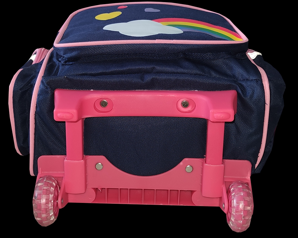 Cute and modern looking backpack make your child a great first impression at school with strong durable trolley arms and wheels.