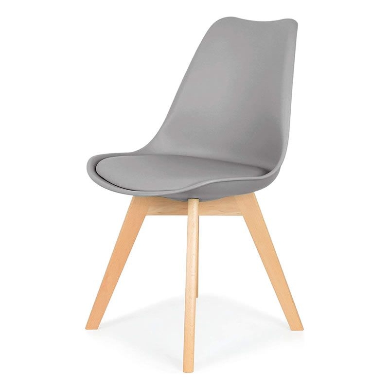 A natural wood, Eiffel-style base supports the plastic seat, while plush padding offers additional comfort and support.