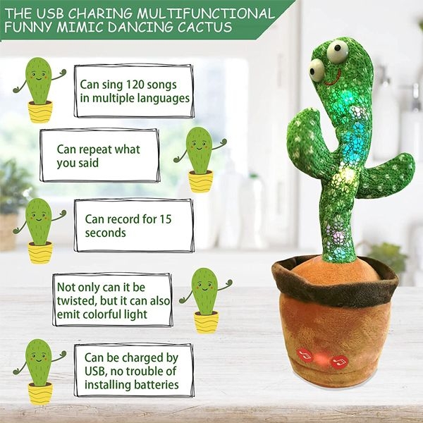 Dancing, Singing, Repeating Light Up Rechargeable Cactus